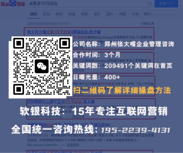 軟銀科技--15年專注互聯(lián)網(wǎng)營(yíng)銷實(shí)戰(zhàn)。服務(wù)了鄭州二七萬(wàn)達(dá)、好想你棗業(yè)、北京中細(xì)軟集團(tuán)、北京魔能國(guó)際、陽(yáng)光視線集團(tuán)、上海媚芙堂、小李補(bǔ)胎、金凱元、歐凱龍集團(tuán)等近8000家企業(yè)。聯(lián)系電話:19522394131